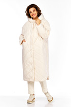 Детали: полуприталенный силуэт, перед с прорезными карманами с клапанами, талиевые вытачки по переду, спинка с рельефами, воротник пиджачного типа, застёжка центральная на петли и пуговицы, втачные длинные рукава, полупальто на подкладке.