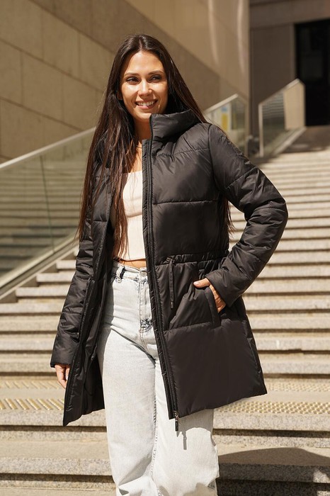 Лаконичное утепленное полупальто сочетает практичность и стильность. Втачной рукав обеспечивает аккуратную посадку и классический силуэт, а регулируемая кулиса по талии позволяет подчеркнуть фигуру и добавить индивидуальности образу. Карман листочка удобное дополнение для хранения мелочей, а видовая витая молния придает изделию современный и оригинальный акцент. Несьемный капюшон с цельнокроенной стойкой не только защищает от ветра и дождя, но и создает строгий, элегантный образ. Это гармоничное сочетание функциональности и эстетики — отличный выбор для тех, кто ценит удобство и стиль в холодную погоду!