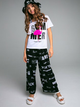 Ультрамариновые джеггинсы силуэта бананы - свободный объем сверху и зауженные книзу. Пояс на широкой внутренней резинке, с дополнительной регулировкой шнурком. По переду имитация карманов, вдоль боковых швов лампасы из переливающихся переворачивающихся пайеток.