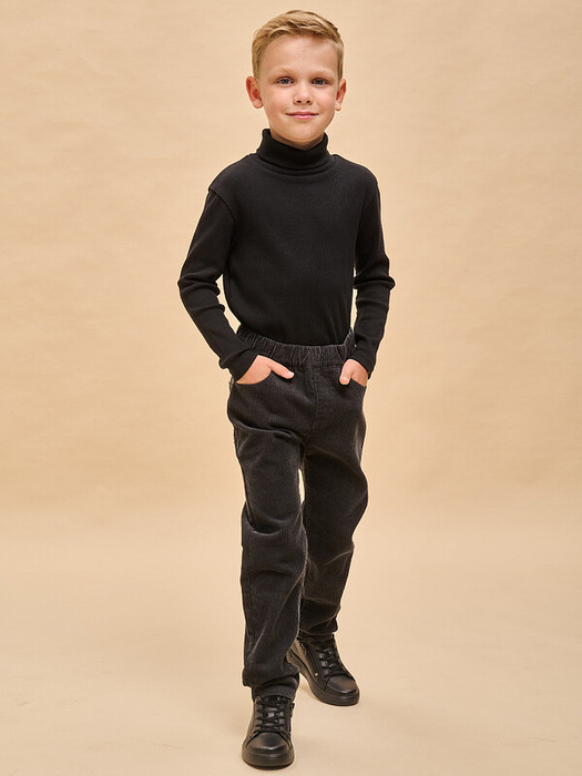Вельветовые брюки с высокой посадкой для мальчика. Стильная современная модель – идеально сидит, отлично носится, всегда аккуратно выглядит. 100% хлопок в составе – ткань мягкая, дышащая, приятная на ощупь, прочная и простая в уходе. Широкая резинка по линии талии отлично сидит и не натирает, объем регулируется внутренним шнуром – брюки не спадают, ремень не требуется. Снизу можно сделать манжеты и отворачивать их по мере роста ребенка. Отлично комбинируются с футболкой, водолазкой, лонгсливом – одинаково хорошо с заправленной одеждой и навыпуск.