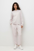 Женские трикотажные брюки. Штаны со стрелками по переду — актуальный тренд на элегантность в простой повседневной одежде. Брюки прямые, с продуманным свободным кроем — безупречно садятся и дарят комфорт. По бокам удобные карманы с наклонным входом. Широкий и мягкий пояс исключает трение и раздражение. Он дополнен шнурком — можно регулировать объём и посадку изделия. Брюки однотонные, без принта и декоративных элементов. Модель неприхотлива в уходе. В составе футера с начесом преобладает высококачественный хлопок — брюки отлично дышат и приятны на ощупь. Полиэстер обеспечивает прочность и сохранность первозданной формы надолго. Штаны представлены в двух элегантных и универсальных цветах: чёрный и молочный. Их легко комбинировать с различными футболками, толстовками, свитерами. Размерный ряд: XS (42); S (44); M (46); L (48); XL (50). Брюки прямого кроя подходят как женщинам, так и девушкам и девочкам-подросткам. Они идеальны для работы, учёбы, прогулок и отдыха, а также как домашние брюки. Их можно носить осенью, весной (демисезон) и летом. Трикотажные брюки — замечательный подарок для мамы, сестры или подруги на любой праздник.