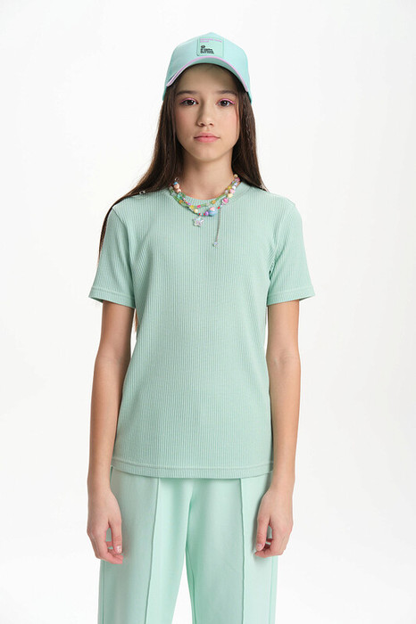 Спортивная футболка для девочки в рубчик. Выполнена из премиального трикотажа. Подойдет как малышам в детский сад так и подросткам. Подходит для круглогодичного ношения весной, летом, осенью и зимой.