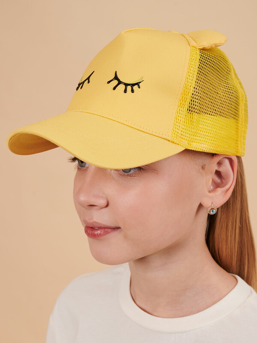 Милая и забавная детская бейсболка. Хлопковая кепка бейсболка — один из важнейших элементов детского летнего гардероба. Сзади предусмотрена застёжка на липучку (велькро). Задние клинья кепки выполнены из тонкой сетки, что обеспечивает вентиляцию и комфорт при носке. Под передним клином подкладка из 100% мягкого высококачественного хлопка. Модель однотонная, декорирована объёмными ушками из основной ткани и силиконовым объёмным принтом в виде закрытых глазок с ресничками. Размерная линейка: 48-50, 51-52, 53-54. Бейсболка детская представлена в следующих цветах: чёрный, жёлтый, розовый, бежевый. Такая кепка подходит детям дошкольного и младшего школьного возраста, а также подросткам. Бейсболка незаменима для пляжа, дачи, похода, прогулок, отдыха. Кепка детская летняя станет отличным дополнением гардероба ребёнка. Хорошо сочетается с любой одеждой. Модная кепка — замечательный подарок дочке, сыну, внучке или внуку на любой праздник. Выбирайте нужный размер по таблице размеров на фото. Цвет товара на экране вашего устройства может отличаться от цвета изделия вживую.