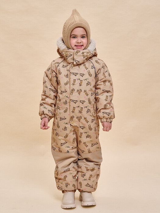 Комбинезон зимний детский из мембранной ткани для девочки. Модель свободного объёма с рукавами кроя реглан - ребёнку комфортно и не стесняет движения. На внешнюю поверхность материала нанесена водоотталкивающая пропитка (DWR), она задерживает грязь и влагу снаружи — ребёнок не промокнет от снега, а комбинезон легко отстирается. Также есть дополнительная пропитка на внутренней стороне ткани — для более надёжной защиты от промокания. Капюшон двухшовный, что обеспечивает анатомически правильную форму и комфортную посадку по голове. Капюшон не отстегивается, предусмотрена регулировка объема эластичными шнурами с пластиковыми стопперами. Внешний край капюшона декорирован мягким искусственным мехом, по текстуре напоминающим «барашка». Из этого же материала выполнена внутренняя подкладка капюшона, она комфортная, тактильно приятная. Удобная центральная застёжка на тракторную молнию. Тканевый стоппер защищает подбородок от зажима молнией. Фиксирующая строчка предохраняет планку от «заедания» в процессе застёгивания. Комбинезон тёплый — для оптимальной защиты от ветра и холода центральная молния дополнительно закрыта ветрозащитной планкой на кнопках и липучках (велькро). Спинка по талии присборена на внутреннюю резинку — комбинезон для девочки зимний безупречно садится по фигуре и не выглядит мешковато. Внутри комбинезона эластичные лямки — есть возможность снимать только верхнюю часть в помещении. Карманы с боковым входом закрываются на водонепроницаемую молнию со скрытыми звеньями — содержимое карманов не промокнет от снега во время активных игр на свежем воздухе. Внутри карманы утеплены мягким флисом. Замок дополнен тканевыми стопперами, что предохраняет его от разрыва. На пуллере эластичный запаянный шнур — ребёнку легко открывать и закрывать даже в варежках. Манжеты рукавов и брючин на комфортных широких резинках, это предохраняет от попадания внутрь снега. На муфтах брюк антискользящая резинка. Комбинезон дополнен съёмными силиконовыми штрипками. Область колен и нижняя часть спинки усилены более плотной тканью — можно смело кататься с горки и ползать на коленках сколько захочется. В каждом изделии нейм-лейбл! Ребёнок не потеряется и не потеряет комбинезон! Световозвращающие канты в проймах переда и спинки — безопасность в тёмное время суток. Модель красивого трендового цвета декорирована милым девичьим принтом. Комбинезон на молнии неприхотлив в уходе — ухаживать согласно указанным на вшивных ярлыках рекомендациям. Изделие выполнено из полиэстера с мембраной — оно не только защищает от холода и влаги, но и хорошо пропускает воздух, давая коже ребёнка дышать. Подкладка из мягкого, тёплого и дышащего флиса (по переду и спинке). В рукавах и штанинах подкладка из тонкого и гладкого полиэстера — благодаря этому ребенку легко надевать комбинезон, руки и ноги не путаются в рукавах и штанинах, а легко проскальзывают. Зимний комбинезон детский идеален для маленьких девочек дошкольного и младшего школьного возраста. Рекомендуемый температурный режим: не ниже минус 25 градусов. В изделии использован один из высокотехнологичных утеплителей — феллекс 260 г/м2. Дышащие свойства мембраны: не менее 3000 г/м2/сут. — ребёнку будет комфортно на прогулке. Модель подходит для носки в детский сад, для прогулок и отдыха н