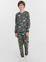Стильная и уютная пижама для мальчика. В составе ткани 100% хлопка — идеально для детской одежды! Модель приятна на ощупь, прекрасно пропускает воздух, позволяя коже ребёнка дышать. При этом в пижаме из хлопка ребёнку будет уютно, даже если он сбросит одеяло. Всё это обеспечивает комфортный и качественный сон. Футболка и удлинённые шорты, плечо спущено, рукава широкие и свободные — пижама на мальчика очень удобна для сна. Широкая и мягкая резинка в поясе не перекручивается и не давит. Отделка горловины из эластичной рибаны — она не растягивается, ребёнку удобно надевать и снимать пижаму. Шорты декорированы сплошным принтом с забавными собаками, будто нарисованными от руки. Футболку чёрного цвета украшает забавный принт в виде зелёной собаки и надписи "я так вижу". В линейке представлены следующие размеры: 2 (92); 3 (98); 4 (104); 5 (110); 6 (116), 7 (122); 8 (128); 9 (134); 10 (140); 11 (146). Хлопковый комплект идеален для сна и отдыха дома — прекрасный выбор для вашего ребёнка! Пижама с шортами для мальчика подходит для круглогодичного использования. Домашний комплект — замечательный подарок сыну, внуку, брату на любой праздник. Выбирайте нужный размер по таблице размеров на фото. Цвет товара на экране вашего устройства может отличаться от цвета изделия вживую.