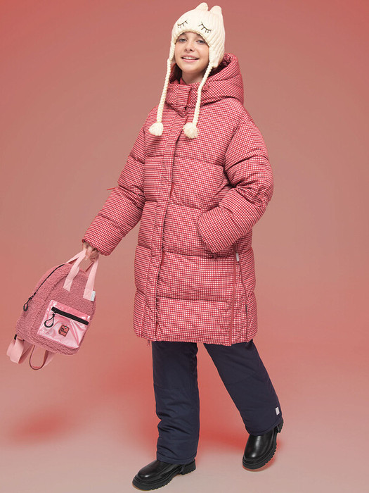 Пальто зимнее для девочки. На внешнюю поверхность материала нанесена водоотталкивающая пропитка (DWR), она задерживает грязь и влагу снаружи — ребёнок не промокнет. Также есть дополнительная пропитка на внутренней стороне ткани. Пальто актуального оверсайз-силуэта подходит для всех типов фигуры. Капюшон двухшовный, что обеспечивает анатомически правильную форму и комфортную посадку по голове. Капюшон не отстегивается, есть регулировка объема эластичными шнурами с пластиковыми стопперами. Внутренние манжеты рукавов из эластичной рибаны (ткань в рубчик) — дополнительная защита от ветра и холода. Ширина горловины позволяет надевать свитер с объемным воротником или объёмный шарф. Центральная застёжка на тракторную молнию с двумя пуллерами — удобно садиться. Тканевый стоппер защищает подбородок от зажима молнией. Фиксирующая строчка предохраняет планку от «заедания» в процессе застёгивания. Куртка-пальто тёплая — дополнительно, для защиты от ветра и холода, центральная молния закрыта ветрозащитной планкой на липучках (велькро). Высокотехнологичные липучки нового образца не цепляются к одежде и не нуждаются в постоянной чистке от ворсинок. Внутренняя кулиска по талии со стороны спинки и рукавам позволяет регулировать объём и менять силуэт изделия. В боковых швах вставлены застёжки-молнии для возможности увеличения ширины по низу изделия. На рукаве модель украшает силиконовая нашивка, надпись переводится: «Сохрани этот день». Пальто стёганое дополнено прорезными карманами на молнии — удобно пользоваться. Карманы с боковым входом закрываются на водонепроницаемую молнию со скрытыми звеньями — их содержимое не промокнет. Внутри карманы утеплены мягким флисом. В каждой куртке нейм-лейбл! Ребёнок не потеряется и не потеряет куртку! На спинке и в боковых швах расположены светоотражающие элементы — безопасность в тёмное время суток. За изделием просто ухаживать. Пальто в клетку - тренд сезона. Куртка выполнена из полиэстера — она тёплая, не промокает, легко стирается, быстро сохнет, сохраняет отличную форму и цвет надолго. Подкладка из мягкого, тёплого и дышащего флиса (по стану, внутреннему воротнику и в капюшоне). В рукавах подкладка из тонкого полиэстера — благодаря этому ребенку легко надевать куртку, руки не путаются в рукавах. Пуховик выполнен в модном красном цвете. Он легко комбинируется с различными брюками, юбками, колготками. Размерная линейка: 3 (98); 4 (104); 5 (110); 6 (116); 7 (122); 8 (128); 9 (134); 10 (140); 11 (146). Пальто оверсайз подходит для маленьких девочек дошкольного и младшего школьного возраста, а также девочек-подростков. Рекомендуемый температурный режим: не ниже минус 30 градусов. Утеплитель: экопух. В рукавах дополнительный слой тонкого синтепона. Модель идеальна для носки в детский сад, школу, для прогулок и отдыха. Зимнее пальто для девочки — прекрасный подарок для дочери или внучки на Новый год или любой другой праздник.