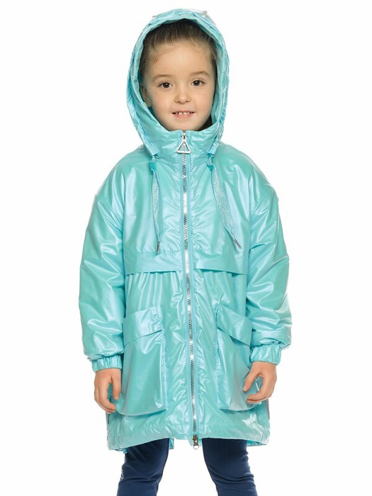 Плащ для девочек. Новая ткань с перламутровым блеском. Утепленная парка для девочек. Температурный режим до +5°С. Удлинённая модель с перепадом длины по спинке и переду. Многозональный подклад флис по стану, в капюшоне и на внутреннем воротнике, утеплитель из легкого синтепона в рукавах и ниже линии талии. Курточная ткань с двусторонним водоотталкивающим покрытием. Прямой, чуть зауженный книзу силуэт, с декоративным горизонтальным членением чуть выше талии. Новая конструкция капюшона вместо классической регулировки объема по краю капюшона спроектирована специальная деталь - держатель из основной ткани, в которую продета репсовая тесьма с люрексом и пластиковыми стопперами. Верхняя часть умеренного объема с втачным рукавом, слегка спущенное плечо, создающее мягкую форму. Рукав по низу фиксируется на манжету из основной ткани с эластичной резиной внутри. Нижняя часть ветровки присборена по шву притачивания и заужена книзу, декорирована большими накладными карманами-портфелями с отворачивающимся цельнокроены