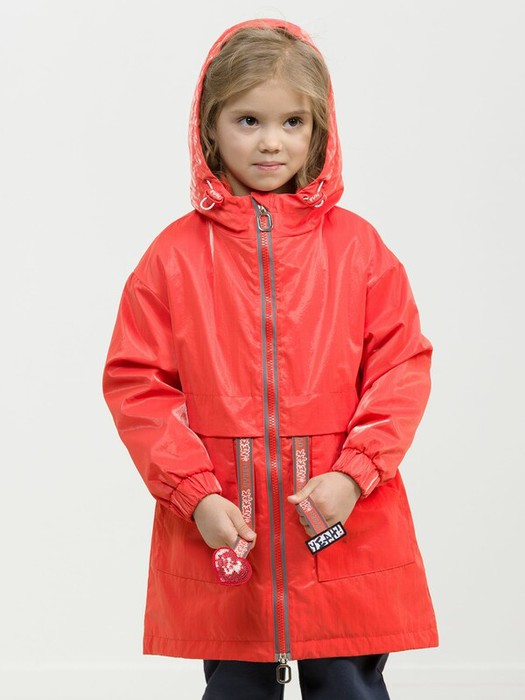 Утепленный плащ синтепон 40 г/м2 в рукавах, подклад из флиса в капюшоне, по стану и на внутреннем воротнике. Рекомендуемый температурный режим не ниже плюс 5 градусов. Силиконизированная ткань крэш с благородным матовым блеском. Водоотталкивающее покрытие. Прямой силуэт, по переду с декоративным горизонтальным членением чуть выше талии и легким плавным перепадом длин по низу изделия. Двухшовный неотстегивающийся капюшон с регулировкой объема, переходящий в воротник стойку. Изюминка большие накладные карманы и две принтованные репсовые ленты с оригинальными наконечниками, один из которых декорирован пайетками. По спинке широкий отлетной пояс со световозвращающим принтом, перевод Следуй за мной. Световозвращающие элементы вдоль застежки молнии.