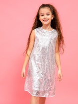 Платье свободного объёма, силуэт трапеция. Glossy rubber принт с розовым металликом и золотым глиттером. Корона из переворачивающихся пайеток.