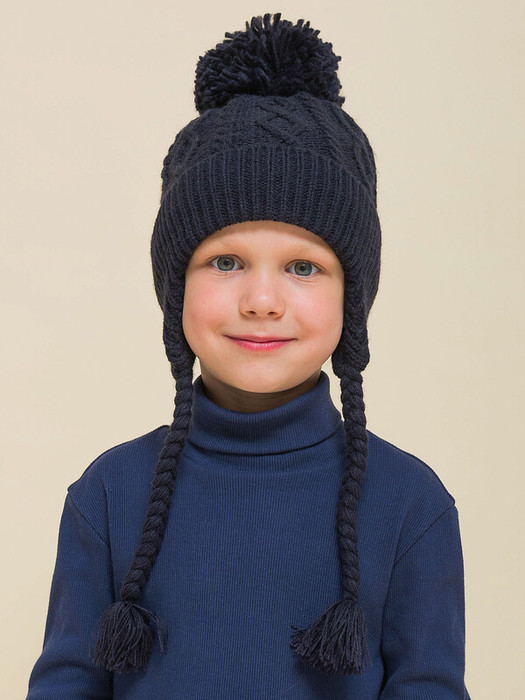 Стильная и уютная детская шапка с помпоном. Нейтральный дизайн делает её подходящей и мальчикам, и девочкам. Модель с отворотом и цельновывязаными функциональными ушками с завязками выполнена из 100% акрила. Материал тёплый, приятный на ощупь и очень комфортный. Шапку легко стирать — она не растягивается, не мнётся и сохраняет первозданный вид надолго. Отличные терморегулирующие свойства акрила позволяют носить изделие в холодную погоду. Внутри флисовая подкладка. Она мягкая и обеспечивает дополнительную защиту от холода. Модель хорошо садится по голове ребёнка, плотно прилегает, не сползает. Основная вязка шапки — модные текстурные “косы”. Цельновывязаные ушки по бокам прикрывают уши ребёнка от холода и ветра. Декоративные завязки выполнены в виде косичек с кисточками — оригинально и стильно. Помпон выполнен из ниток в тон изделия. Эта модель станет отличным подарком для маленьких модников!