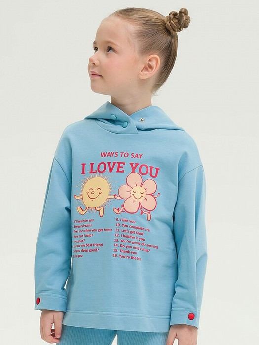 Худи оверсайз из футера для девочки. 100% хлопок в составе – ткань мягкая, дышащая, приятная на ощупь. Прямые широкие рукава, спущенное плечо и свободный крой – настоящий трендовый оверсайз. Теплый и удобный капюшон – застегивается на горловине на одну или две кнопки на выбор. Объем рукава регулируется кнопками – легко и просто менять одним движением. Яркий цветной принт спереди для позитивного настроения. Худи составляет гармоничный дуэт с джоггерами или велосипедками. Идеально для активного детства – на каждый день, для учебы и занятия спортом.