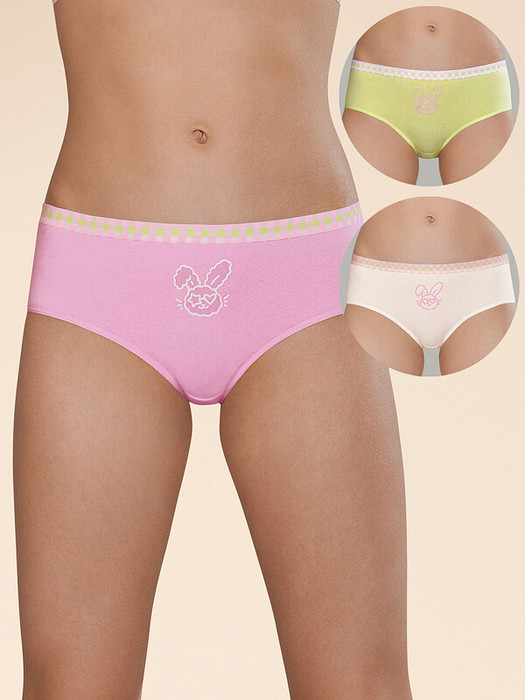 Комплект трусов для девочки из 3-х шт. Слипы средней посадки выполнены из ткани с высоким содержанием хлопка — модель мягкая, гипоаллергенная и прекрасно пропускает воздух. Благодаря эластану слипы для девочки надолго сохраняют отличную форму, даже после многочисленных стирок. Качественная ткань и анатомически правильный крой обеспечивают комфортную посадку на теле. Мягкая резинка исключает раздражение и трение. В комплект входят трусы детские для девочки трёх нежных оттенков, которые обязательно понравятся любой девочке. Трусики для девочки по переду украшены забавным принтом в виде зайчика в очках. Резинка трусов также декорирована милым принтом в клетку. Принты эластичные и стойкие, отлично переносят частые стирки. Хлопковые трусы подходят девочкам дошкольного возраста. Помните о правильном уходе за изделием: рекомендуется стирать при температуре не выше 30 °C, без предварительного замачивания, с изнанки. Это поможет сохранить качество и цвет белья на длительное время.