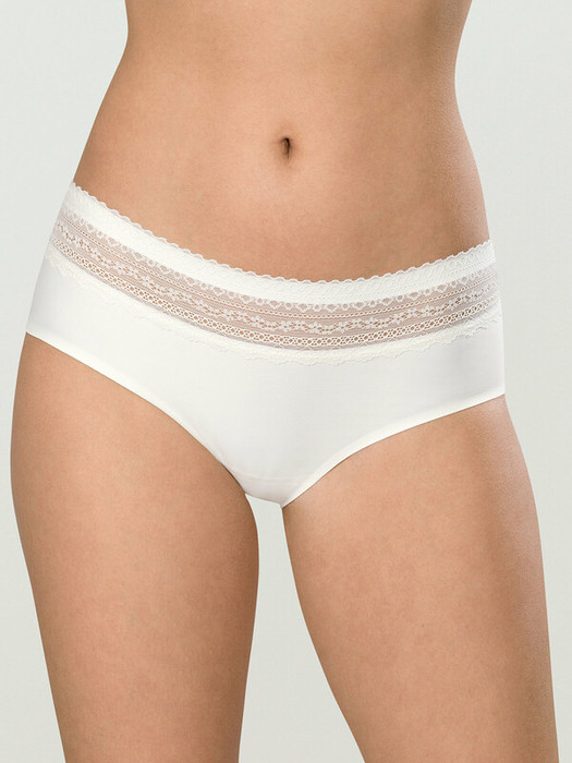 Женские трусы-шорты с низкой посадкой. Изготовлены по бесшовной технологии с минимум швов. Кромки по ноге и по талии подогнуты и приклеены, хлопковая приклеенная ластовица.  Нежное геометричное кружево по линии талии высотой 5 см – не передавливает тело и не натирает кожу.  Модель оценят те, кто ищет незаметное и невесомое белье на каждый день или особого случая.