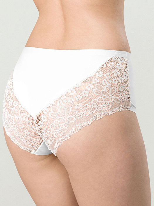 Женские трусы-шорты с высокой посадкой. Изготовлены по бесшовной технологии с минимум швов. Кромки по ноге и по талии подогнуты и приклеены, хлопковая приклеенная ластовица. Нежное цветочное кружево придает модели утонченный вид. Продуманный крой трусов создает изящный силуэт. Модель оценят те, кто ищет незаметное и невесомое белье на каждый день или особого случая.
