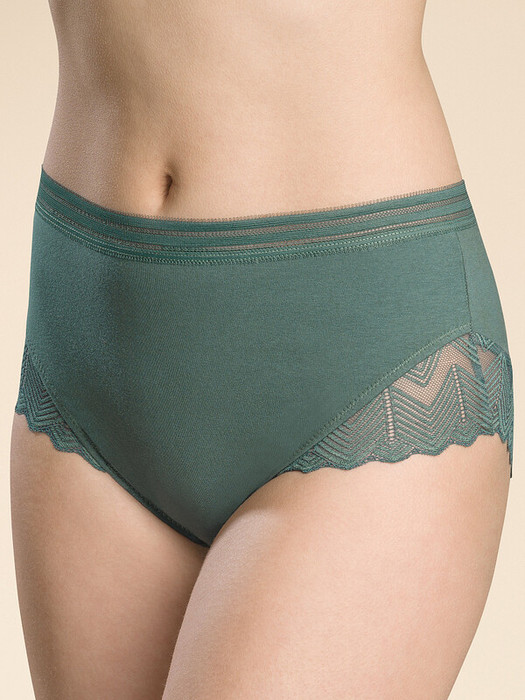 Женские трусы-шорты с высокой посадкой для влюбленных в красивый и активный образ жизни. Ткань с высоким содержанием хлопка и небольшим содержанием эластана. По линии талии мягкий принтованный эластик - не передавливает тело, не натирает кожу. Обработка по ноге двухниткой – шов не деформируется. Нежное геометричное кружево отражает тренд на умный дизайн.
