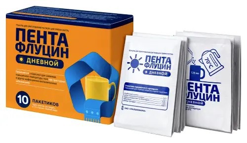 Розничная цена от 240. Пентафлуцин дневной применяется у взрослых для симптоматического лечения острых респираторных заболеваний (ОРЗ) и острых респираторных вирусных инфекций (ОРВИ), сопровождающихся высокой температурой, ознобом, головной и мышечной болью.