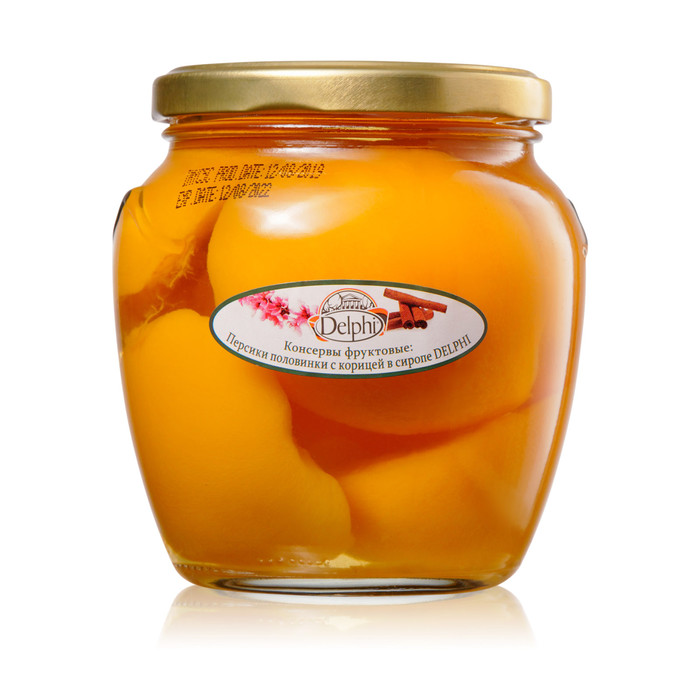 Персики половинки с корицей в сиропе DELPHI 550 г