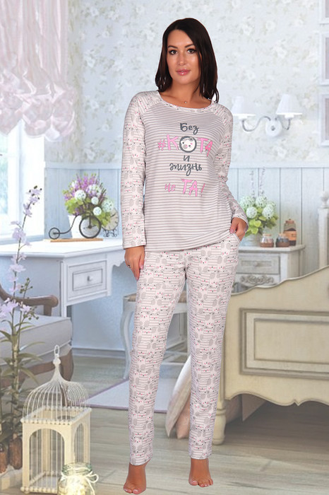 Пижама молодежная из кулирки брюки+кофта. Брюки прямые на резинке, кофта с длинным рукавом, на полочке принт