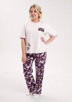 Пижама молодежная из гладкокрашеного трикотажного вискозного полотна, состоящая из топа и шорт. Топ - на узких бретелях, полочка – с лифом «бюстье», отделанным кружевом, в центре лифа – разрез, окантованный основным материалом. Основная деталь переда присборена по шву соединения с лифом. Верхний срез спинки и проймы окантованы основным материалом, бретели вытачаны из окантовки.Шорты – средней длины, с эластичной тесьмой по талии.