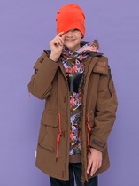 Оригинальный плащ свободного силуэта с асимметричной застежкой молнией выполнен из легкой водоотталкивающей ткани. Модель выделяется обилием необычных элементов, таких как комбинированная конструкция центральной застежки, которую частично закрывает клапан на пуговицах. Декоративные пуговицы использованы также в застежке капюшона. Плащ отвечает всем параметрам, характерным для детской одежды, отлично стирается и быстро сохнет.