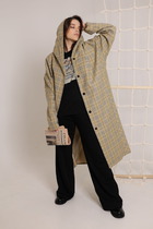 Плащ в длине миди, выполнен из ткани с водоотталкивающей и грязеотталкивающей обработкой. Силуэт слегка расширенный к низу. Отложной воротник с цельнокроеной стойкой. Центральная застёжка на петли и пуговицы. Спереди функциональные карманы-листочки. Рукава кроя реглан, по низу обработаны паты с застежкой на пуговицы. Спинка со средним швом со шлицей по низу. Плащ на подкладке.