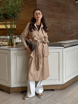 Данная модель прекрасно сочетается практически с любой одеждой и обувью, подходит для весны и ранней осени, а также для прохладных летних вечеров. Длина изделия по спинке 81 см. Длина рукава от плечевого шва с подворотом 60 см. В комплекте съемный пояс.