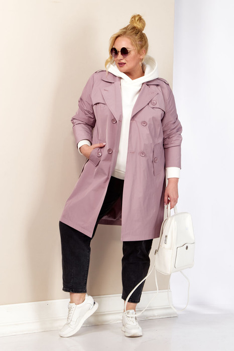 Современный, модный и стильный плащ на весенний период. Изготовлен из плащевой мягкой ткани, без утеплителя, на подкладке. Застежка двубортная. Горловина оформлена широким воротником пиджачного типа. Рукав втачной, длинный, что делает его практичным выбором для переменчивой погоды. Длина регулируется с помощью отворота. Передняя часть с отлетной кокеткой и двумя фунуциональными карманами на внутренних магнитах. Изделие прямого, классического кроя в комплекте со съемным поясом, который придает приталенный силует и элегантность. Спинка с отрезной кокеткой.