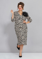 Платье-рубашка приталенного силуэта, выполнено из легкой костюмно-плательной ткани. По переду застежка на металлические пуговицы, по низу платья встречная складка (имитация шорт). Изделие без подкладки, пояс с пряжкой в комплекте.