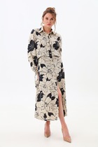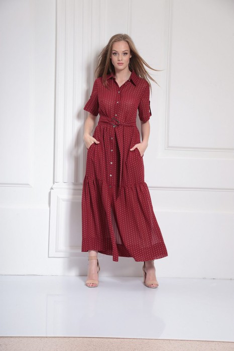 Летящее шифоновое платье с застежкой на пуговицы по переду. В боковых швах функциональные карманы. Пояс съемный. Подкладка по юбке изделия.