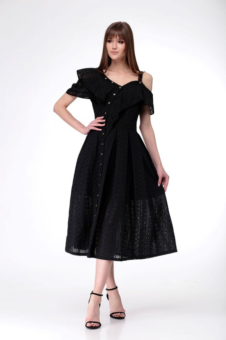 Очень красивое натуральное платье из ришелье с асимметрией по плечам.
