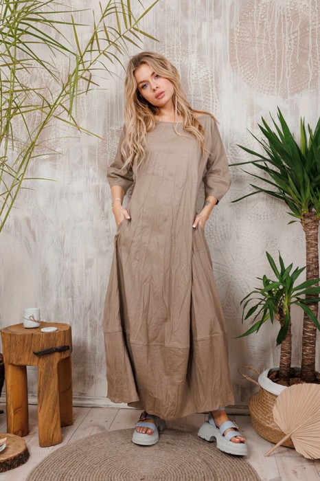 Волшебное длинное льняное платье "АМУЛЕТ" с очень интересной формой юбки и рукавов ввиде тюльпанчиков. Плюс удобные стильные большие карманы. Наши платья дают невероятное чувство комфорта, защищенности и красоты. Все изделия коллекции "АМУЛЕТ" имеют натуральную ткань, сложную обработку всех внутренних швов и энергосберегающий крой. В подарок идет шопер с логотипом бренда.