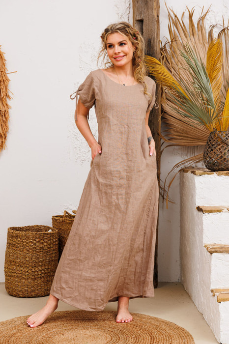 Стройное, благородное  платье с  карманами в боковых швах, что очень функционально. По спинке есть какеточка от которой исходит красивая встречная складка. Рукавчики небольшие, по низу  регулируемая кулиска с завязочками. Платья бренда АМУЛЕТ создаются по  славянским законам энергообережной одежды. Имеют перекидной крой и  нет швов по главным энергоцентрам человека и они все пошиты закрытым способом по изнанке платья. используется только натуральная ткань и фурнитура. В подарок   платье упаковывается в шопер с символом бренда.