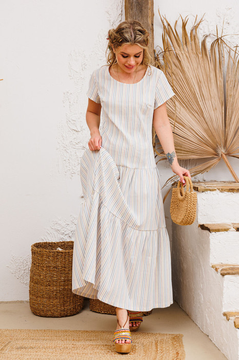 Совместные покупки Нижневартовск Женская одежда Платья — Платье AMORI 9807 полоска голубая