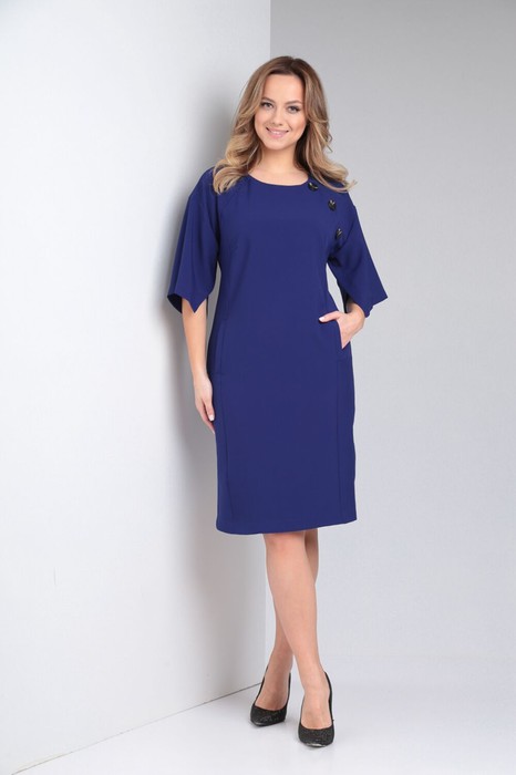 Яркий образ женского платья будет привлекать внимание окружающих.По спинке изделия застёжка-молния и разрез. По переду полукруглый вырез горловины,рельефные линии от проймы. Действующие карманы . Необычный рукав даёт свободу движения. Платье на любой сезон.