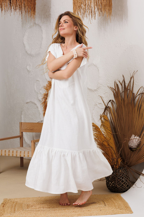 Натуральное льняное длинное платье прямое спереди и по спинке, что очень стройнит и невероятно красивый валан по низу платья. Удобные и вместительные карманы в боковых швах. Горловина сделана деликатным уголком с очень глубокой обтачкой по груди, что позволяет ходить без белья. все платья бренда АМУЛЕТ созданы с применением древних славянских законов обережного пошива одежды.