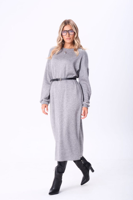 Платье женское из трикотажного полотна прямого силуэта длинной миди. Полочка и спинка цельнокроеные. Линия плеча спущена, рукав втачной по низу притачная манжета. Горловина округлой формы обработана бейкой.