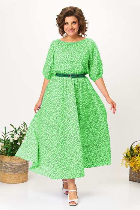 Платье макси свободного силуэта из хлопковой ткани - отлияный вариант на жаркую погоду. Рукав реглан 3/4 длины, низ на резинке. Горловина собрана на резинку. Платье отрезное по линии талии, на резинке. Юбка полусолнце. В  комплект входит съемный пояс. Длина юбки: 93см . Длина рукава: 43см. Длина спинки: 42см.