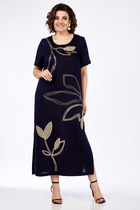 Платье полуприлегающего силуэта, выполнено из однотонной ткани. Платье длиной за колено, с небольшим расклешением по низу. Полочка платья с двубортной застежкой на пуговицы. Полочка с вертикальными рельефами. В шве притачивания бочка к средней части полочки обработан карман. Горловина V-образной формы, с отложными лацканами и воротником пиджачного типа. В области талии выполнен декоративный элемент из хлястиков и металлических рамок.
