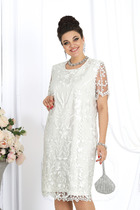Платье длины миди, полуприлегающего силуэта, отрезное по линии талии.