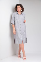 Платье длины миди, полуприлегающего силуэта, отрезное по линии талии.