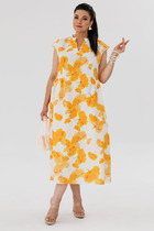 Свободный крой, округлая горловина и длина до колена создают образ воздушности и легкости. Рукав 3/4 с сборкой по окату и низом на резинке добавляет игривости и удобства. Линия талии подчеркнута эластичной резинкой, что придает фигуре изящество.