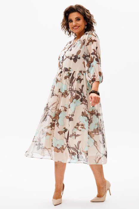 Рукава 3/4 с резинкой по низу создают легкость и игривость, а отрезное по талии с аккуратной сборкой обеспечивает идеальную посадку. Платье также имеет съемный чехол ,который обеспечивает комфорт и уверенность во время носки. Вы можете быть уверены, что ваше платье будет выглядеть безупречно и элегантно.