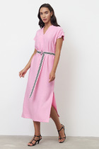 Особого внимания заслуживает конструкция: отрезная по линии талии, с деликатной сборкой, благодаря чему лён ложится мягкими волнами, не сковывая движений. Продуманный разрез по ноге добавляет лёгкости походке и делает образ более динамичным. В боковых швах устроены два кармана - неприметные снаружи, но такие необходимые внутри, чтобы сохранять ощущение уюта и практичности в любой момент.