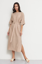 Полуприлегающий силуэт, отрезное по линии талии, нагрудные вытачки втачные рукава с воланом. Отложной воротник на стойке. Функциональная застежка по планке на пуговицы по всей длине. Воланы по низу платья.