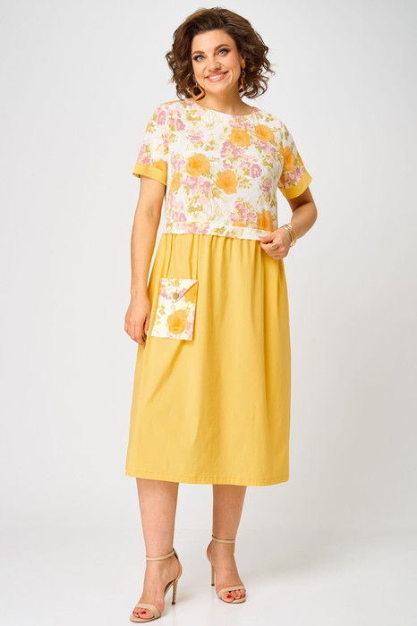Легкое женское платье из комбинированных тканей (однотон и дизайн) — отличный вариант для летнего сезона. Платье позволит ощущать себя легко и комфортно в любой ситуации, а свободный силуэт поможет скрыть недостатки. Подойдет для романтических прогулок, встреч с друзьями, а также в отпуске.