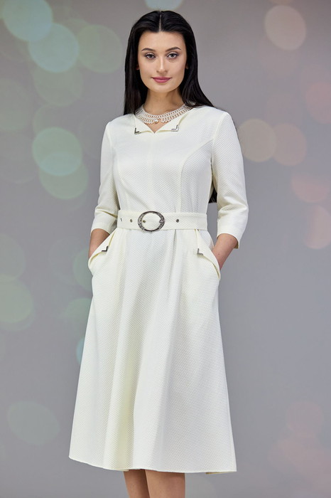 Красивое женское платье для создания утонченных и ярких образов. Платье соответствует модным тенденциям 2022 года. Широкий размерный ряд платья, включающий большие размеры, позволит вам подобрать подходящий размер. Платье актуально в любое время года. Станет идеальным вариантом, как для торжественных мероприятий, на праздник, выпускной, корпоратив, Новый год, день рождения, юбилей, так и для деловых и повседневных встреч, офиса. Женское платье отрезное по линии талии. Лиф платья по переду с рельефными швами. Спинка со средним швом, в котором находится потайная молния. Приталивание спинки лифа достигается при помощи талиевых вытачек. Юбка платья солнце-клеш.Рукав прямой двухшовный 3/4. К платью прилагается съемный пояс. Длина 115 см