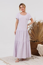 Платье полуприлегающего силуэта выполнено из полотна цвета медь с принтом полевые цветы. Характеристики: полуприлегающий силуэт, отрезное выше талии, фигурный вырез горловины, по переду в области груди декоративная не съёмная деталь, низ и верх рукава на резинка, застежка потайная тесьма молния в среднем шве заднего полотна изделия, юбка в изделии свободного кроя с разрезом (разрез 34 см). Длина по спинке от верхнего края рукава 133 см, длина рукава 63 см.