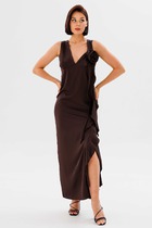 Платье в длине мини, выполнено из эластичного гипюра, обработано трикотажной эластичной подкладкой телесного цвета. Лиф отрезной по т линии талии. Обработаны чашки. Верх рукава собран на резинку. Рукав прямой до линии локтевого сгиба, имеет притачную деталь в форме клеша. Застежка - потаная молния в боковом шве. Юбка широкая по форме полукруг.