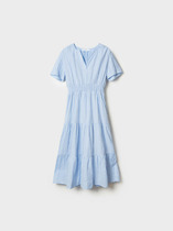Платье в длине мини, рукав втачной, к низу клешёный. Лиф платья обработан рюшами
