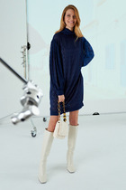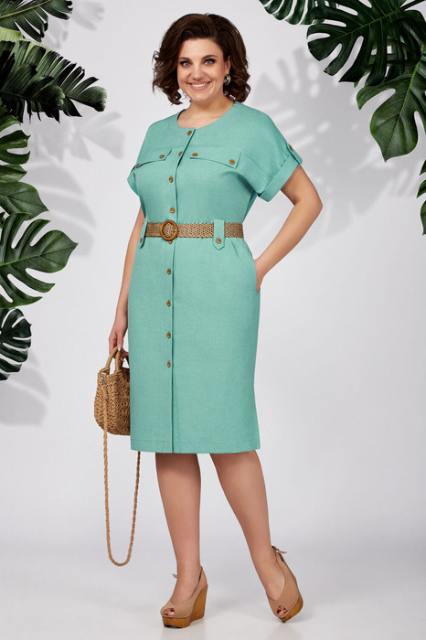 Платье женское полуприлегающего силута выполнено в стиле"сафари" из плательно-костюмной ткани с содержанием льна.Перед с отрезной кокеткой,в шве клапаны с 2 декоративными пуговицами,две шлевки с декоративными пуговицами,в боковых швах карманы и разрезы по низу.Застежка центральная на 9петель и пуговиц.Пройма спущена с притачной манжетой по низу и патой с декоративной пуговицей. Спинка со средним швом и шлевкой с декоративной пуговицей.